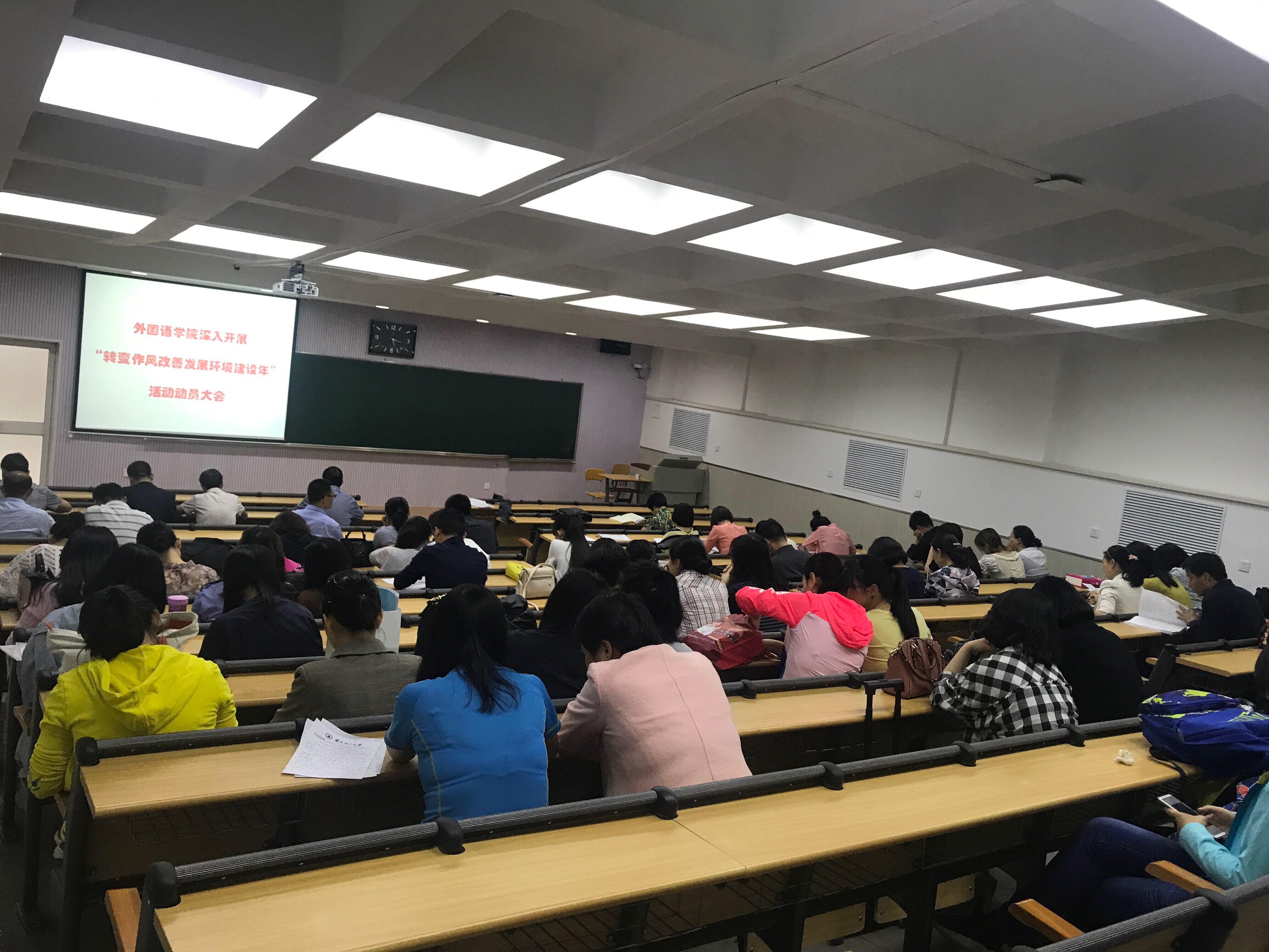 近日,外国语学院党委组织师生开展了系列学习活动。党委中心组按学校统一部署和要求,对习近平总书记在北京大学师生座谈会上和纪念马克思诞辰200周年大会上两个重要讲话精神进行了认真学习;组织全院教师学习了《教育部关于建立健全高校师德建设长效机制的意见》及《兰州理工大学深入开展“转变作风改善发展环境建设年”活动实施方案》,并召开了全院动员大会。外国语学院研究生党支部和本科生第一、第二支部按照学院党委要求,组织全体学生党员、预备党员专题学习习近平总书记在北京大学师生座谈会上的讲话精神及纪念马克思诞辰200周年讲话。