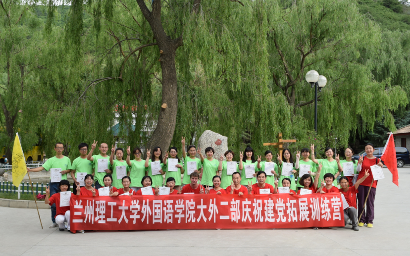 6月29日,在支委会的认真策划和组织下,外国语学院教工第二党支部(大学外语第二教学部)党员和群众教职工来到榆中兴隆山庄拓展训练基地,开展了“庆祝建党拓展训练营”活动。