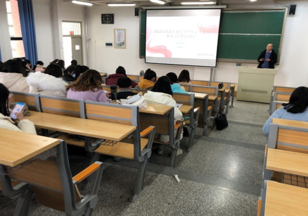 2021年12月15日英语系在观成楼205教室启动了2022届英语专业毕业论文和毕业实习工作,英语系主任王龙就毕业实习做了详细的安排,本届毕业实习将由英语专业统一安排教学实习,一部分学生将在我院大学英语教学部的安排下与大学英语老师进行课堂听课,教学观摩、教案撰写,试讲等环节,一部分学生将在理工大附中进行教学实习。