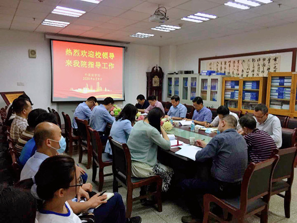 6月9日下午,学校党委副书记、校长芮执元,党委常委、副校长韦尧兵,副校长胡洁,事业发展处处长何卫平,教务处处长韩建平、副处长刘永平一行赴外国语学院调研大学英语教学改革工作。学院领导班子、各教学基层组织负责人和教师代表参加会议。