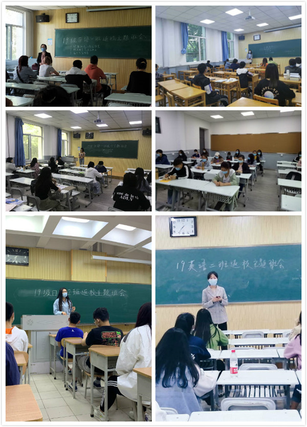 近日,学生已陆续返校,为进一步规范返校学生的日常管理,外国语学院21个班级相继召开了学生返校后“开学第一课”主题班会。向同学们强调了封校管理期间的请销假制度、上课纪律、校园安全、学生心理安全、防范金融诈骗风险、征兵入伍等事宜。
