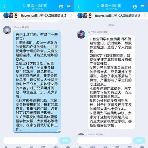 同学们通过线上见面,心情非常激动,结合自身情况以及对疫情期间的学习争先发言,纷纷表示将肩负起时代赋予的使命,坚定与人民共患难,与祖国同命运的决心;同时,大家也表示要保持好心态、重防护、勤消毒、少出门,配合好防控防疫举措的同时安排好自己的学习生活,为夺取抗击疫情斗争的胜利作出自己应有的贡献。