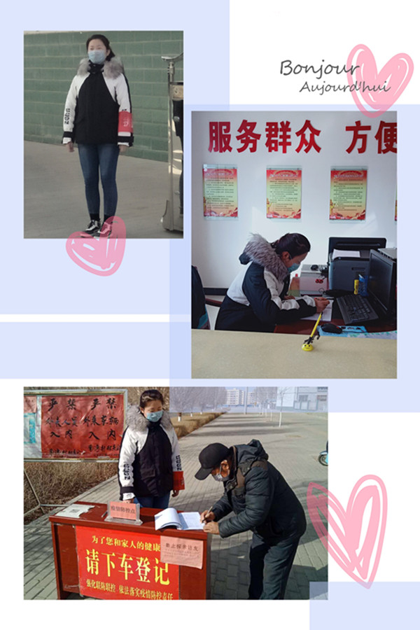 魏梦菲,18级俄语班的一名同学。战疫当前,作为新时代大学生,她穿上志愿服成为守卫家园的一名青年志愿者战士,义不容辞地用行动守护家园。作为社区网格员负责着一千多户居民的安危,每天要打无数的电话去核实社区居民健康情况。她的主要工作内容包括:出入体温登记,回复居民投诉,核对出入居民信息,接待居民来访咨询,补充修改家庭信息,整理疫情管控物资清单等等。除此之外,她还运用在校所学的心理健康方面的知识在社区宣传,将自己的温度汇聚成社区居民心中的暖流,安抚和鼓励大家稳住心态,静待花开。疫情防控无小事,事事关乎群众安危。在返工复工阶段,更不能掉以轻心,她表示会坚守志愿者岗位,细致入微地做好服务大家的工作。
