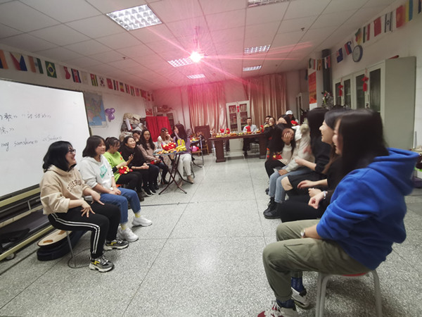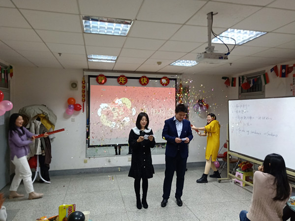 联欢会在师生照片的放映中拉开帷幕,此次联欢会形式多样,气氛活跃。晚会现场,节目异彩纷呈,气氛热烈,处处洋溢着青春活力。各年级代表进行节目表演,既有多国语言歌曲表演,又有曲乐悠扬的琵琶独奏,更有即兴舞蹈表演,整个教室气氛温馨而活跃,猜歌名、传递猜词等游戏环节加深了师生们之间的默契。最后伴随着一首《奔跑》,同学们写下心愿卡,寄托对来年的期许,晚会在大家的意犹未尽中落下帷幕。