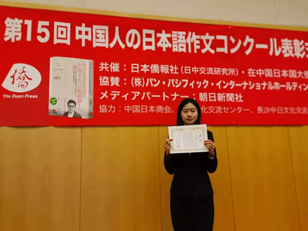 今年比赛的题目为《2020年东京奥运会,我想实现的梦想》、《思考中日新时代——中国青年的发言》和《现在就想告诉你——想对老师、朋友说的话》。此次共有来自国内208所高校的4359篇作文参赛,经过中日专家的多次严格审核,上海理工大学研究生潘呈同学获得全国特等奖(日本大使奖),我校日语专业2016级的王立雪同学获得三等奖、付榕同学获得优秀作品奖。而且,两位同学的作文已被收入获奖作品集,今年已在日本发行。