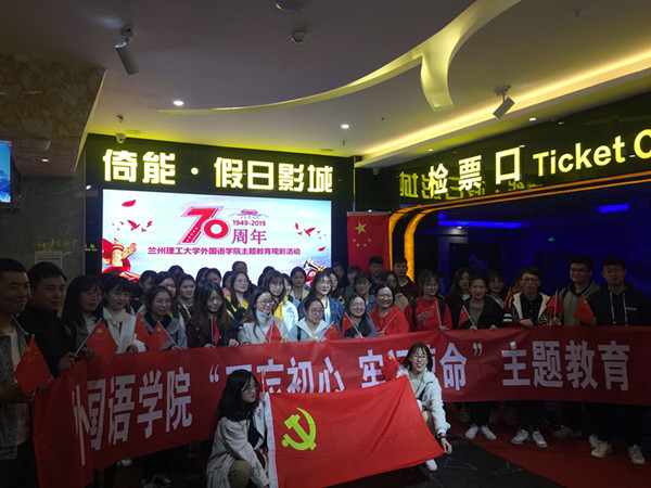 为庆祝新中国成立70周年,助力“不忘初心、牢记使命”主题教育,按照《兰州理工大学关于组织观看“不忘初心、牢记使命”主题教育优秀影片的通知》 要求,10月22日下午外国语学院党委组织近90名师生党员参加主题党日活动观看爱国励志影片《攀登者》。