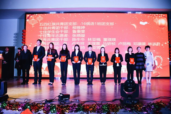 2018年12月28日晚7点,兰州理工大学外国语学院2017-2018学年学风建设表彰大会暨2019元旦晚会在兰工坪校区举行。兰州理工大学党委学工部副部长、易班发展中心常务副主任马栋林出席活动。外国语学院院领导、各系部主任、辅导员、班主任、教师代表及学生代表350余人观看了演出。学风建设表彰大会由外国语学院党委焦娜副书记主持。