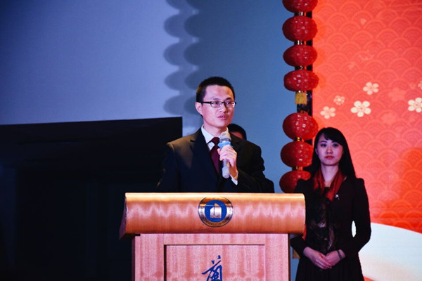 在庄严的国歌声后,马栋林对外国语学院学生工作给予了充分肯定,向在学风建设中取得优异成绩的先进集体和个人表示衷心的祝贺,激励全体同学积极进取,奋进求是,取得更大的成绩,并向全体师生致以新年的问候及美好祝愿!
