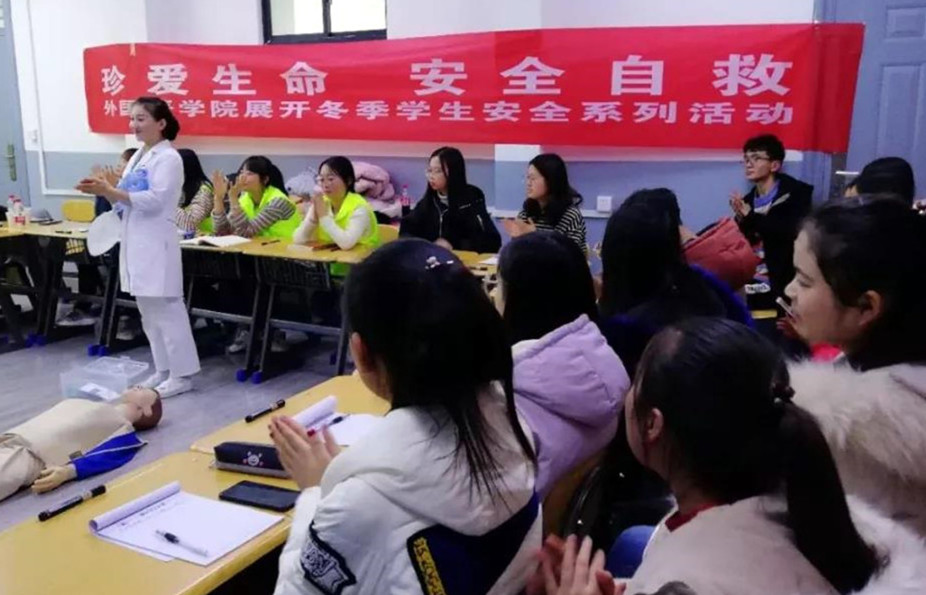 为进一步提升文明校园的创建质量,普及基本的救护知识,让学生了解急救知识,掌握急救方法,提高同学们自救、互救的能力,12月17日,外国语学院邀请兰州市第一人民医院开展了一场安全急救知识培训,学院“兰莲花”志愿者及学生干部30余名同学参加了此次培训。培训由兰州市第一人民医院重症医学科杨丽老师主讲,外国语学院贾永胜老师主持。