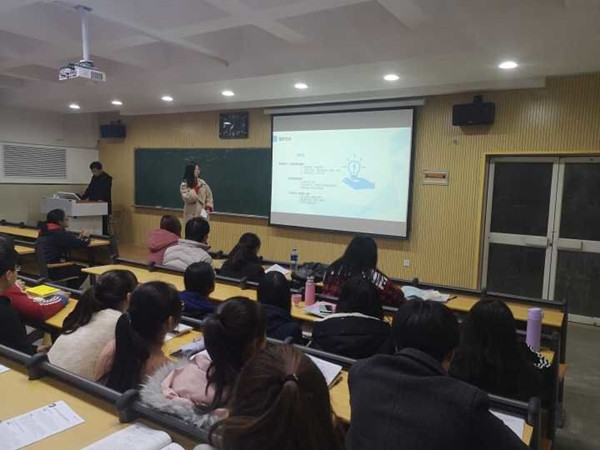 12月12日,外国语学院英语本科生党支部在1南201举办大学英语四、六级考前辅导交流会,向全院学生介绍英语学习和考试经验。本次交流会由英语专业罗梦楠、闫瑞同学主讲。