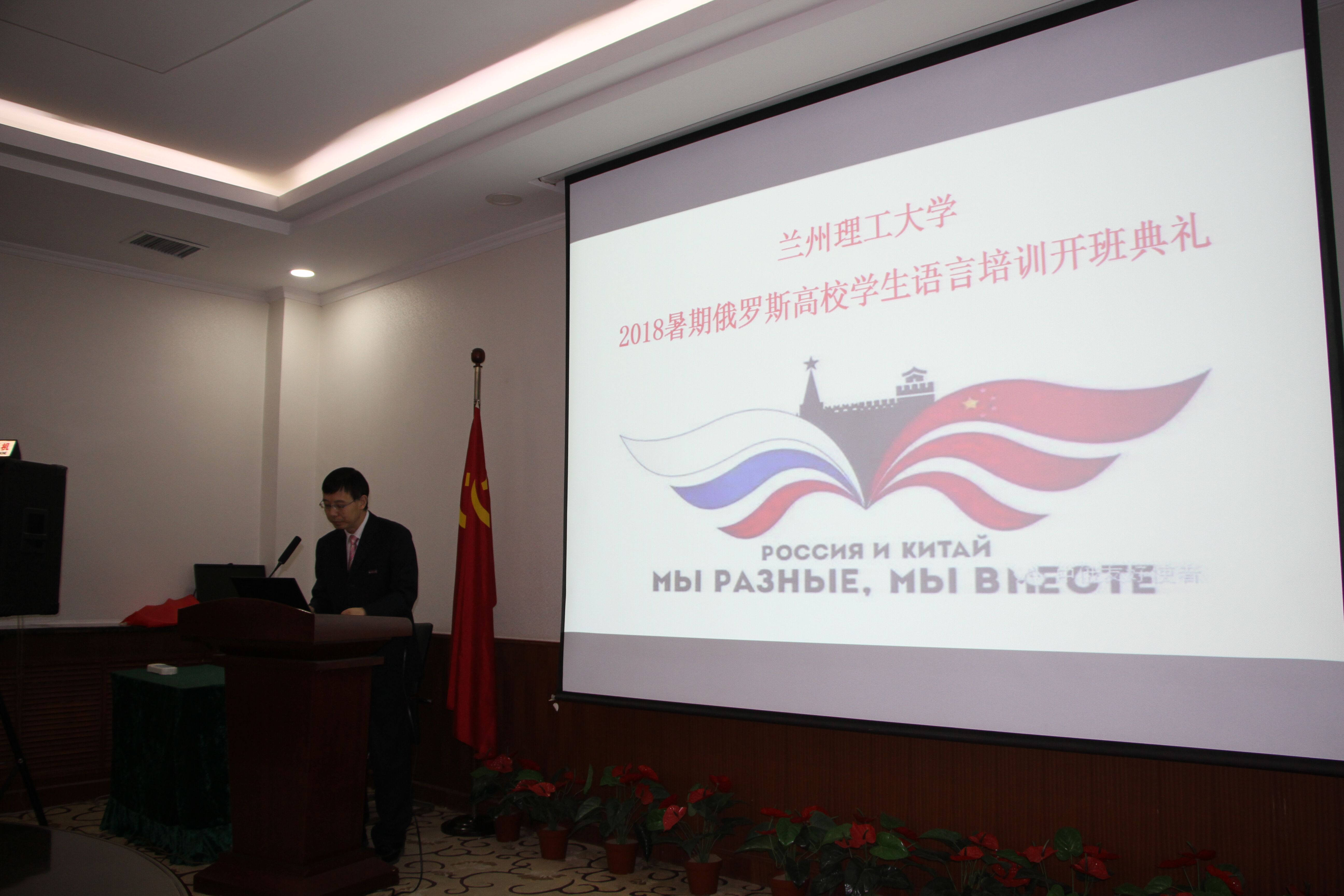 7月4日上午,兰州理工大学2018年暑期俄罗斯高校学生语言培训开班典礼在兰工坪校区逸夫科技馆三号会议室隆重举行,来自俄罗斯高校学生语言培训师生、学校国际合作处处长王文达教授、教务处处长韩建平教授、学生工作部张艳副部长、国际教育学院院长助理焦娜、文学院国际汉语教育中心主任戴莉副教授、外国语学院党委书记周琦教授、副院长朱景梅副教授、俄语系主任李亚林以及部分教师、辅导员贾永胜老师及学生1+1语伴等80多人参加了典礼。开班典礼由外国语学院院长任育新教授主持。