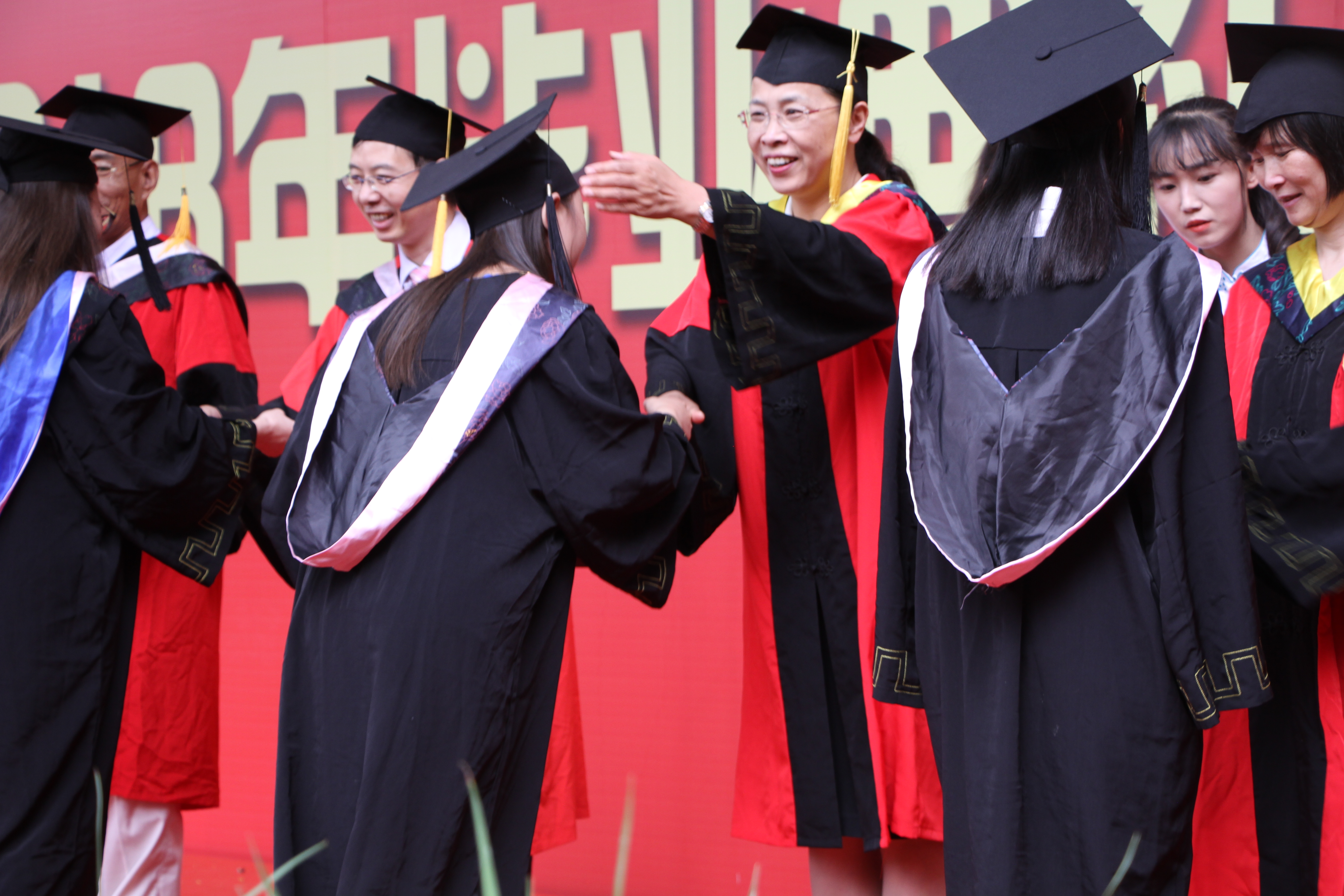 在庄严激昂的国歌声中,仪式正式开始。曹洁副校长首先致辞,向圆满完成学业的毕业生表示热烈祝贺和衷心期望,希望毕业生们能够尽快融入社会,完善自我、提升能力、回报社会,秉承母校 “奋进求是”的校训,发扬红柳精神,树立成功信心,坚持不懈,尽情施展才华,希望同学们关注母校发展,常“回家”看看,并祝福每一位同学都拥有一个幸福美好的人生!在宣读了《兰州理工大学2018年春季学期普通本科学士学位授予文件》后,曹洁副校长及外国语学院学位评定委员会成员向获得文学学士学位的毕业生授予了学位,同时,亲手为每位毕业生正冠拨苏并合影留念。
