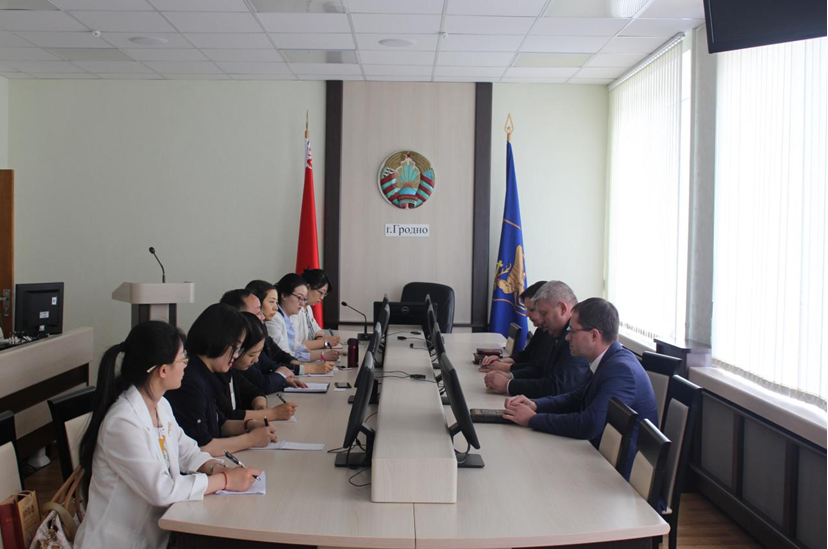 培训期间,学员们除每天语言翻译、教学方法等内容实践强化培训外,还与格罗德诺国立大学、医科大学和农业大学等高校就省州开展高等教育合作对接交流。王海珍老师通过学校PPT、音视频文件材料向白俄高校介绍我校的办学历史、学科发展及重大成就,受到白俄高校的关注。格罗德诺州、市两级政府对本此项目活动给予关注,经济委员会主席安德烈、市长科伊分别与学员们座谈,介绍近年我省与该市友城关系发展现状,安排学员参观了该州“甘肃省中医中心”、甘肃全圣集团格罗德诺酒店、中甘国际白俄在建项目等。格罗德诺州报刊媒体和州电视台对此次学员的培训交流活动进行了采访和报道,王海珍老师作为学员代表接受了采访。