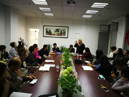 4月17日下午,根据本学期基层活动安排,大学外语第一教学部在学院会议室举行中外教师教学经验交流活动。本次活动由大外一部侯斌华主任主持,大外一部全体老师参加。本次参加教学经验交流活动的外教是在大外部担任听说教学的Beverly 和Kim两位老师,她们都是具有丰富教学经验的外教。Beverly主要介绍了她在课堂上给学生立规矩和建立学生信息卡的经验,她对学生的严格要求和对学生的尊重让在座的中国教师们非常受感动。Kim主要介绍了她的启发式和互动式教学经验,她循循善诱和不急不躁的教学方法也让老师们感到受益匪浅。陈方老师紧接着做了示范教学,两位外教对此次教学经验交流活动都给予了充分肯定,并希望以后多举行这样的活动,通过这样的交流活动,大家可以相互学习,各取所长。教学经验交流活动之后,部里又分别对15级四级考前辅导和一系列相关竞赛的事情作了相应安排和布置。最后,侯斌华主任希望大家尽快适应互联网+时代的大学外语教学改革大趋势,并积极参与到与之相关的工作中来,为集体的事情尽到自己应尽的责任。