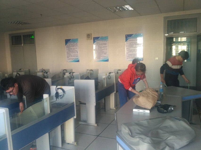 学生党员打扫语音室