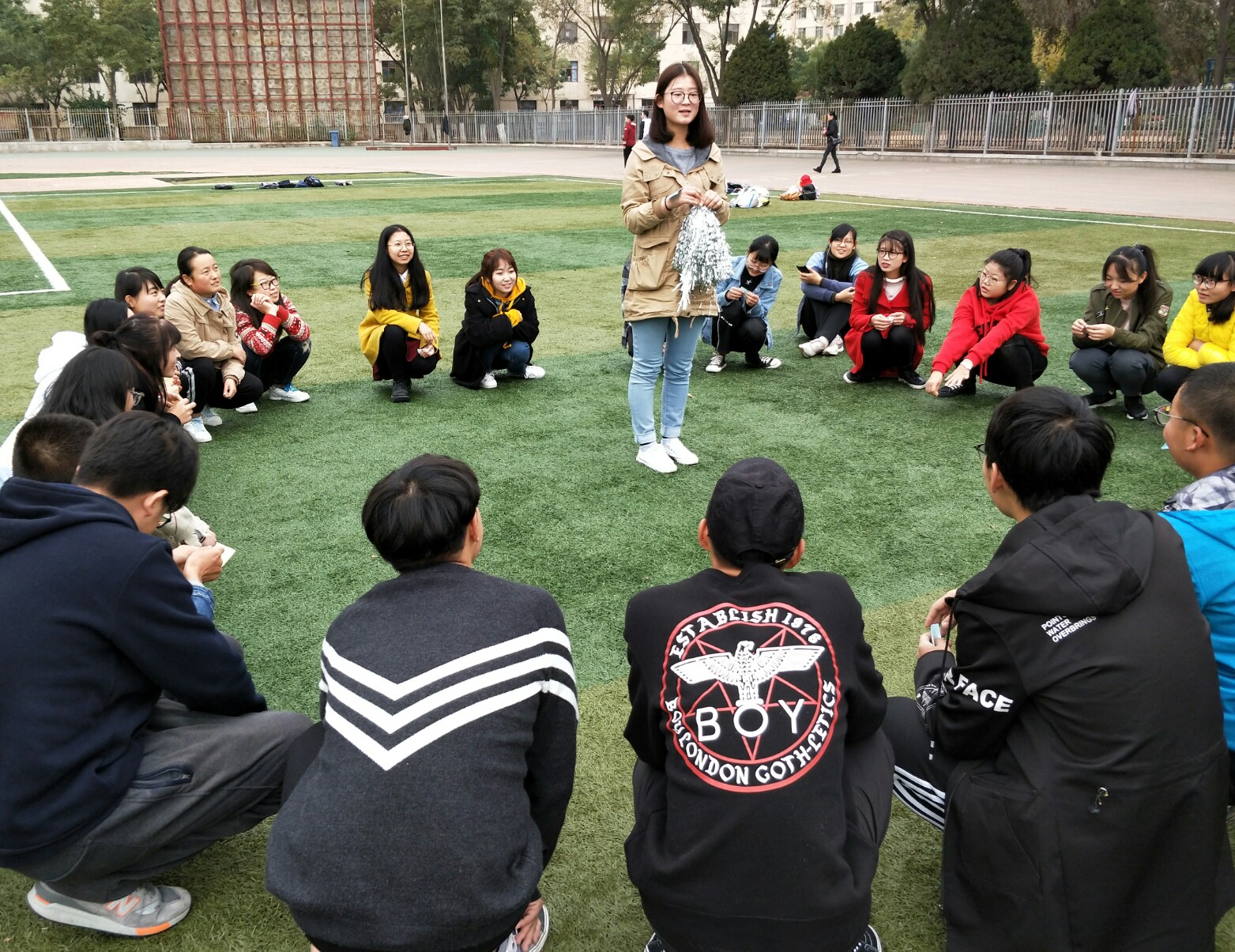 为帮助大一新生更好地适应、融入大学生活,增强班级凝聚力,2017年10月24日下午,由兰州理工大学外国语学院心理健康辅导站组织的新生心理团体辅导活动在校本部田径场顺利开展。