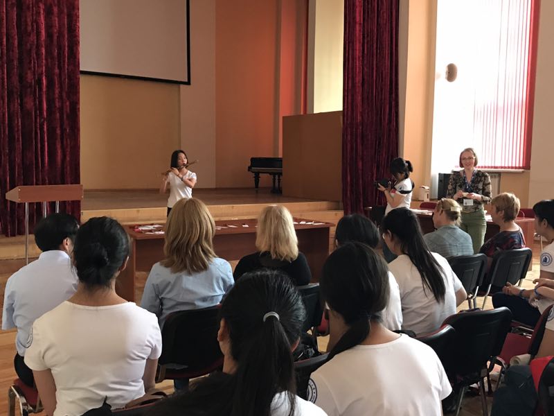 最后,器乐表演同学悠扬的竹笛演奏更是令国立水文气象大学师生深切感受了中国旋律和中国古典乐器的魅力,聆听着音色浑厚而柔和,清新而圆润的笛声,现场师生不时发出惊赞之声。俄罗斯国立水文气象大学实践的一天讲述中国故事、传播中国声音、感受着中华传统文化的骄傲与自豪!