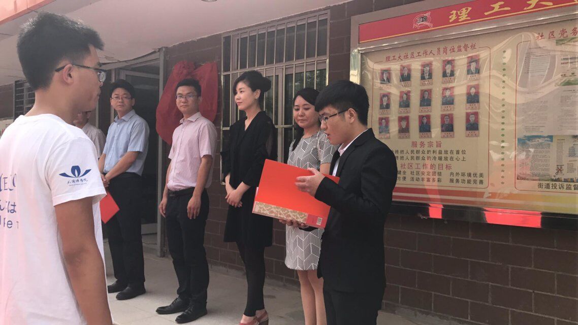 为了引导广大青年更好地践行社会主义核心价值观,给广大青年志愿者提供实践的平台,传递爱心,传播文明,弘扬无私奉献的志愿者精神,2017年7月4日上午,兰州理工大学外国语学院青年志愿服务社会实践基地挂牌仪式于七里河区西湖街道办事处理工大社区隆重举行。兰州理工大学校团委王正民书记出席并讲话,外国语学院党委张艳副书记、西湖街道党工委书记郑先喜、党工委副书记龚挺、理工大社区书记赵晋锋、理工大社区颜为贵主任,以及外国语学院团委书记毛春芳老师、学生党支部、兰莲花青年志愿者代表共同参加了挂牌仪式。
