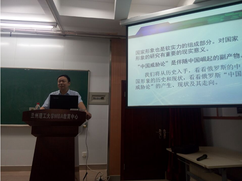 于鑫教授总结分析了中国形象在俄罗斯的变化,讲解了“中国威胁论”在不同时期的主要表现及代表人物,深入分析了“中国威胁论”的主要原因及其主要内容。同时,于鑫教授充分肯定了近年来不断提升的中国形象以及“一带一路”对中俄发展的积极影响,使参会者充分认识到了作为“俄语人”所肩负的文化交流责任与使命。他鼓励大学生脚踏实地,努力为中俄进一步文化交流做出贡献。师生们认真聆听了于教授的报告,并结合亲身经历与于教授对“中国形象”进行了探讨,整场报告让师生受益匪浅。讲座结束后,于鑫教授在俄语教研室与俄语系李亚林主任就“一带一路”背景下我校俄语专业学科建设及人才培养进行交流,并对俄语专业17版培养大纲的修订提出了建设性的建议。