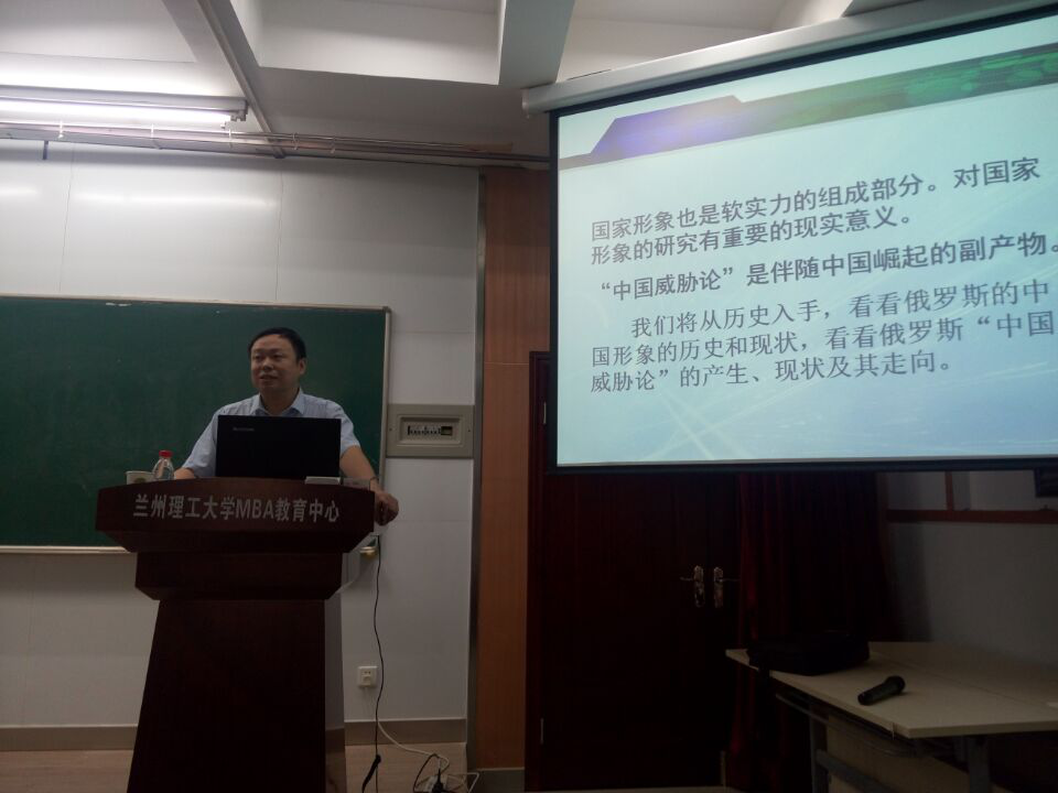 于鑫教授总结分析了中国形象在俄罗斯的变化,讲解了“中国威胁论”在不同时期的主要表现及代表人物,深入分析了“中国威胁论”的主要原因及其主要内容。同时,于鑫教授充分肯定了近年来不断提升的中国形象以及“一带一路”对中俄发展的积极影响,使参会者充分认识到了作为“俄语人”所肩负的文化交流责任与使命。他鼓励大学生脚踏实地,努力为中俄进一步文化交流做出贡献。师生们认真聆听了于教授的报告,并结合亲身经历与于教授对“中国形象”进行了探讨,整场报告让师生受益匪浅。讲座结束后,于鑫教授在俄语教研室与俄语系李亚林主任就“一带一路”背景下我校俄语专业学科建设及人才培养进行交流,并对俄语专业17版培养大纲的修订提出了建设性的建议。