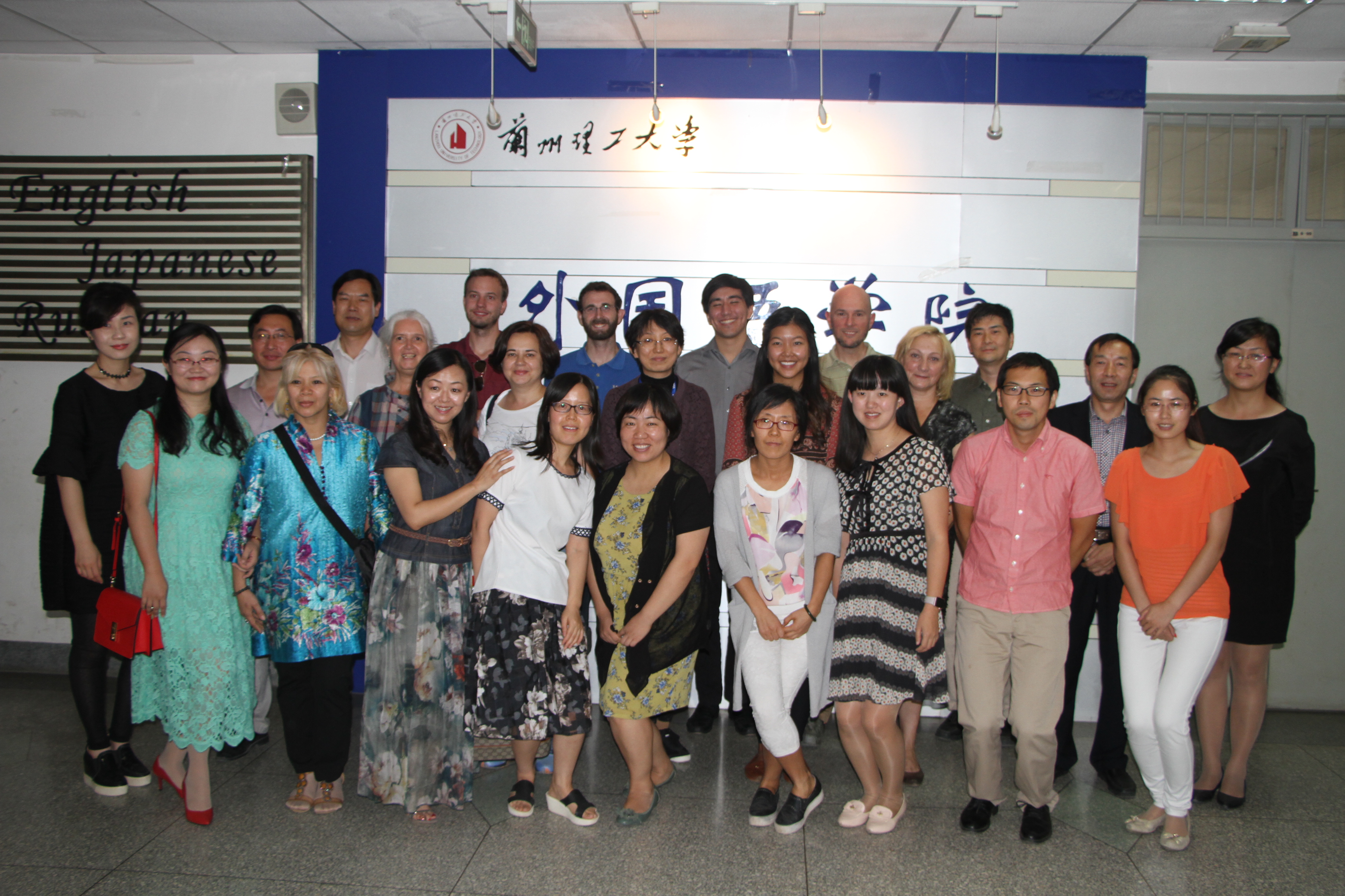 合影 8月30日下午,外国语学院在学院会议室召开了中外教师座谈会。会议由朱景梅副院长主持,张艳副书记、赵军强副院长、各系部主任、全体外籍教师和部分教师代表参加了会议。 座谈会在轻松、融洽、和谐的气氛中进行。会上朱景梅副院长简单介绍了学院的基本情况和对外籍教师教学的基本要求。中外教师依次进行自我介绍,在幽默诙谐的交流中增进了彼此了解。最后,针对外籍教师在生活和工作中存在的困难和疑惑,学院领导和各系部主任逐一进行了解答。 此次会议,学院希望外籍教师能够专心于教学工作,也能够为学院的科研工作注入新的活力,希望中外教师在今后的教学中加强协作,共同提升我校学生的外语水平。