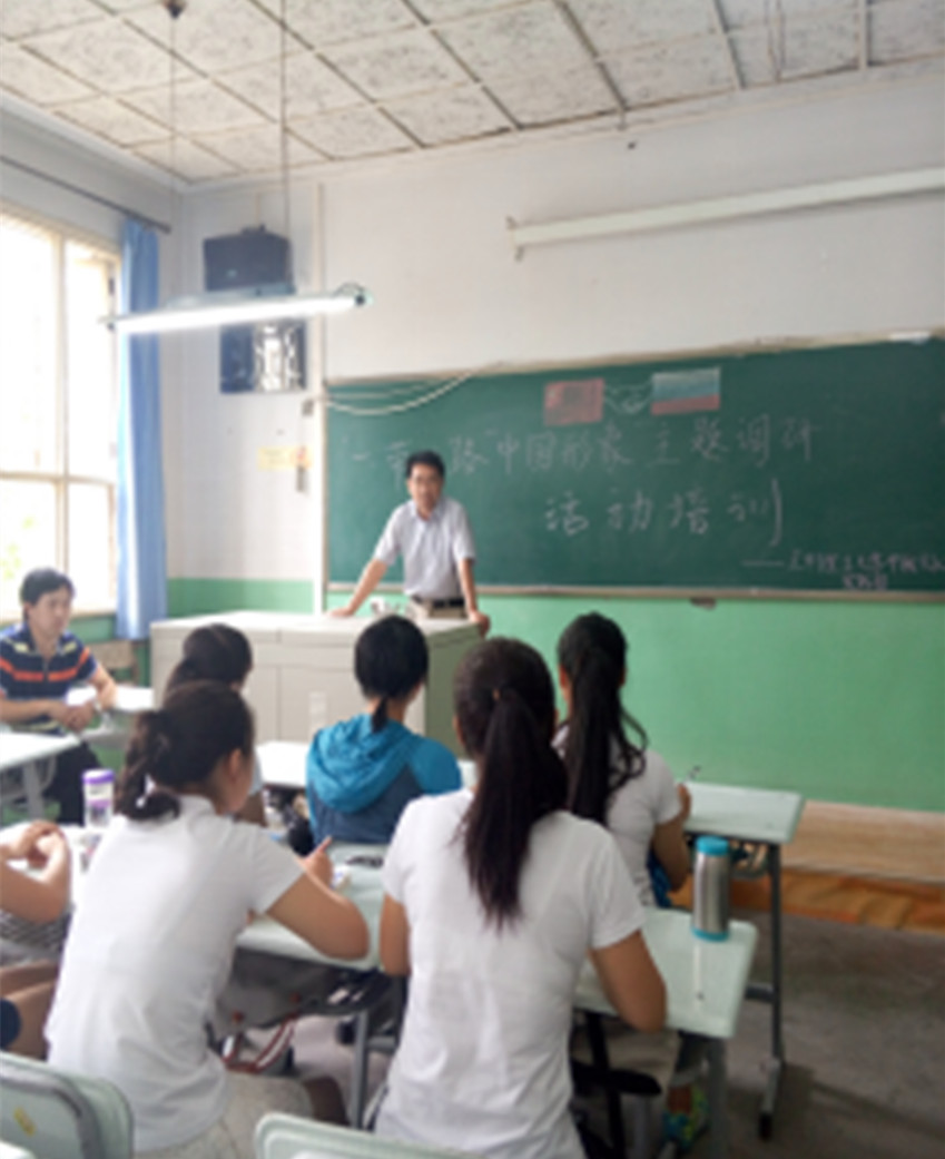 外国语学院赵生吉书记讲话 7月8日,外国语学院邀请校团委王正民书记、学生处孙伟国副处长、外国语学院赵生吉书记为2015级俄语1班“暑期赴俄罗斯实践”学生举行了专项培训,李亚林主任以及即将赴俄实习的13名同学参加了此次培训会议。 培训会上,团委处王正民书记首先向俄语班学生团队申请的“一带一路”中国形象社会主题调研项目获团中央重点立项项目表示祝贺,并从赴俄文化交流的意义及在外实践安全问题做了讲话;学生处孙伟国副处长就此次赴俄罗斯莫斯科动力大学语言实习的目标、任务、时间安排及赴俄交流与合作做了讲话;外国语学院赵生吉书记针对外出同学的日常交往礼节、境外安全问题以及展示中华文化方面发表了讲话。