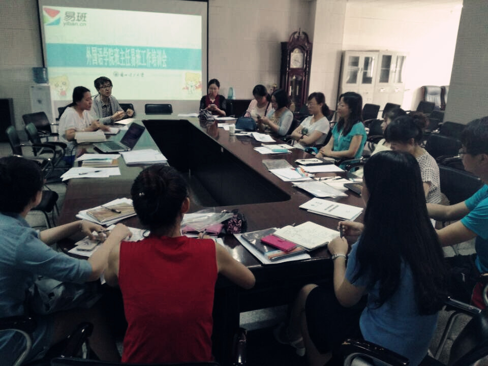 7月8日上午9点,外国语学院在校本部综合楼六楼会议室对新聘班主任进行“易班公共平台专题培训”,辅导员贾永胜老师详细介绍了我校易班推广建设的情况,外国语学院易班平台使用情况以及易班管理及使用基本知识和具体操作方法。