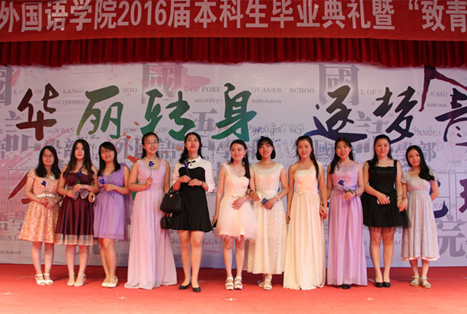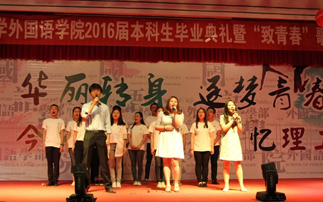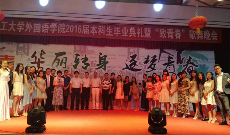 6月23日晚7时,外国语学院2016届毕业生毕业典礼暨“致青春”歌舞晚会在本部大学生活动中心隆重举行。学院领导、教师代表、班主任、辅导员,大一至大三学生和毕业生一起等待着激动人心的时刻。