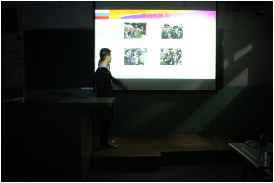 5月9日晚,外国语学院俄语系在校本部1#213成功举办“俄罗斯国情文化系列——“胜利日”主题纪念活动,外国语学院赵生吉书记、赵军强副院长、辅导员贾永胜老师、国际合作处马丽华老师、俄语系主任李亚林老师及全体师生参加了此次活动。 本次俄罗斯国情文化系列活动围绕着“纪念卫国战争胜利71周年”主题展开,以5月6日晚组织学生观看《莫斯科保卫战》拉开序幕。活动期间,俄语班开展了《卫国战争》图片资料展、师生共唱苏联卫国歌曲《喀秋莎》、外籍教师安娜博士为师生作了精彩的主题报告《伟大的卫国战争》、各学习小组奉献了丰富的卫国战争题材讲解与学习心得,最后以相关国情知识竞答将活动推向高潮。师生们热情高涨、积极参与,使得本次活动圆满结束。 本次系列活动充分丰富了俄语系学生的课外学习与知识视野,其成功举办不仅丰富了学生的第二课堂,活跃了俄语学习的氛围,而且通过对俄罗斯卫国战争相关内容的学习,强化了学生的爱国意识,远离战争,珍爱和平。