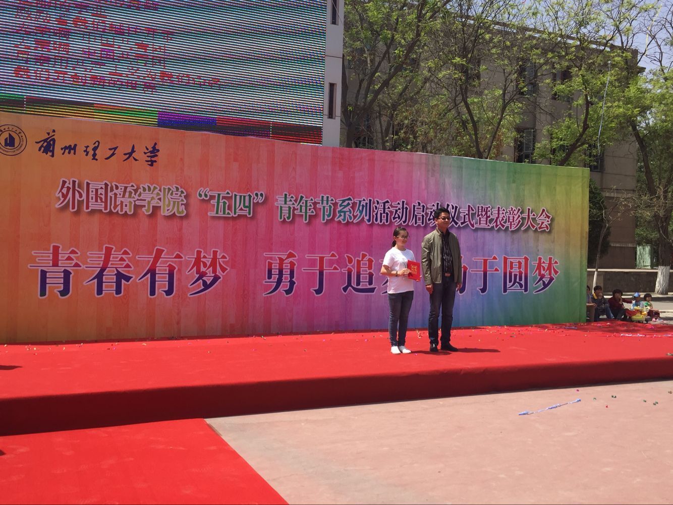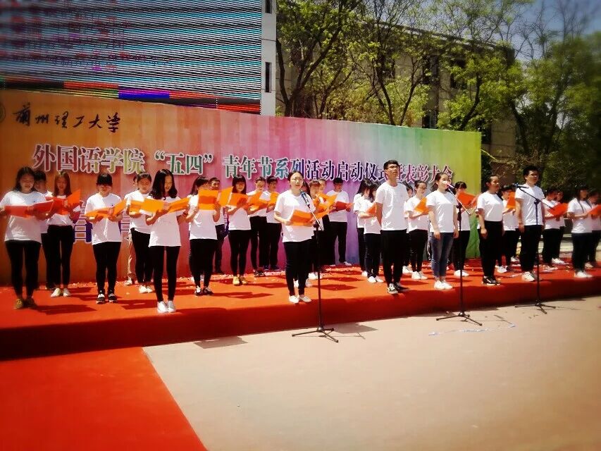 5月4日中午12:20,兰州理工大学外国语学院在校本部篮球场举办“纪念五四运动九十七周年”系列活动启动仪式暨“外院好青年”表彰大会。大会以“青春有梦、勇于追梦、勤于圆梦”为主题,表彰10名优秀青年代表,以此激励外院学子传承五四精神,勇担责任,用青春梦托起中国梦。兰州理工大学曹洁副校长、团委王正民书记、后勤集团曹戈书记、工大舞台周厚金总经理、科技处王宝才副处长、财务处赵环副处长、外国语学院任育新院长、赵生吉书记、张艳副书记、朱景梅副院长、赵军强副院长,辅导员、班主任老师代表,全院青年学子出席大会。 大会在嘹亮的国歌声中拉开帷幕。曹校长寄语青年学子把握时代主题,担起时代重任,培育和践行社会主义核心价值观,弘扬红柳精神,坚定信念,团结一致,争做奋进求是、志存高远的理工大人;争做品德优秀、情操高尚的理工大人;争做乐学思进、锐意创新的理工大人,努力成为可堪大用、能担国家重任的栋梁之材!同时,宣布外国语学院“纪念五四运动九十七周年系列活动”正式启动。随后,出席大会的相关领导对我院受表彰的古玥、李玲等“外院好青年”进行颁奖。大会上,青年代表杨刚、罗梦楠同学向全体青年发起倡议,号召广大学子始终紧密围绕在党的周围,树立坚定的共产主义理想,将青年人满腔的爱国之情和报国之志转化为勤奋学习、不断进取的动力,用优异的成绩回报党和国家的培养,实现自己的人生价值,为国旗增辉。最后,全院学生与合唱团一起唱响五月的花海,在这个属于青年的节日里许下诺言,牢记身份、严以律己,向着更辉煌的未来出发! 传承五四精神,共圆时代梦想。未来一段时间外国语学院团委将持续深化五四精神的学习与传承,通过系列活动引领广大团员青年在“勤学、修德、明辨、笃实”上下功夫,积极培育和践行社会主义核心价值观!