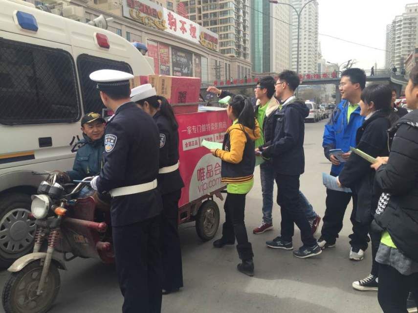 践行雷锋精神,开展交通安全宣传。雷锋日,外国语学院青年志愿者来到了兰州市七里河区交警大队,参加了兰州市七里河区交警大队组织的学雷锋交通安全文明公益宣传活动,践行雷锋精神,开展交通安全宣传。活动中,志愿者帮助民警摆放交通安全常识及典型交通事故宣传展板,并通过向驾驶员、行人分发交通安全宣传单、赠送印有交通安全知识的小手册、接受群众咨询、劝导交通违法、搀扶老人过街等形式,开展公共秩序维护志愿服务活动,普及交通法律、传播交通安全,积极倡议广大交通参与者践行交通文明,告别交通陋习,引起了众多群众对文明交通行动计划的广泛关注,收到了良好的宣传效果,受到了群众的欢迎。