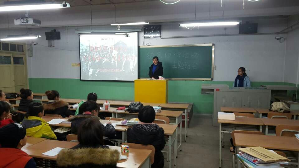 12月9日,外国语学院15级日语2班在1号楼308教室举行纪念“129运动”主题班会。学校财务处总稽核赵环老师参加班会并作“珍惜当下 展望未来”主题发言,全体同学参会,班会由班主任范银莺老师主持。