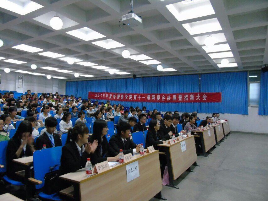 9月22日晚7点,外国语学院在本部1南501学院召开学生会换届选举暨表彰大会。院党总支副书记张艳、团委书记毛春芳及两委会全体成员、大一新生参加了本次大会。 首先,大会一起回顾了过去一学年的两委会各项活动与学生成长的点点滴滴。毛春芳老师对过去一学年的团学工作作了总结报告,同时也对下一学年的团学工作提出了期望。她指出,两委会开展的各项活动增进了同学们之间的友谊和相互之间的了解,是良好的第二课堂教育基地。会上,张艳副书记、团委书记毛春芳、辅导员贾永胜老师为本年度的两委会优秀干部颁发了证书,为新一届两委会干部颁发了聘书。会上,张艳副书记对过去一学年两委会成员的付出表示衷心感谢。她强调,学生会是学生工作队伍中重要的组成部分,两委会为大学生创造了更宽广的锻炼自我、提升自我、奉献自我的舞台;她要求大家要端正工作作风、工作态度,注重工作方法,明确分工,团结协作,高效认真开展工作,同时要严格要求自身,兼顾学生会工作和学业,在各方面发挥榜样示范作用,争做优秀学生干部;要进一步加强内部建设,提高学生干部的工作能力;要以多样化、创新性的形式,来加强学生的爱国主义教育和理想信念教育;要培养主动学习能力,在开展好活动的同时,要保持良好的学习成绩。相互学习,取长补短,谦虚谨慎,戒骄戒躁。立足于本职,以服务同学为根本,携手把我院学生会打造成一支更加优秀的学生组织。