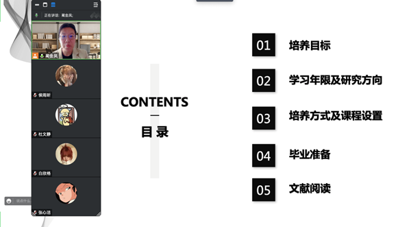 蔺金凤老师从翻译硕士(俄语笔译)研究生培养目标、学习年限及研究方向、培养方式及课程设置、毕业准备、文献阅读等五个方面详细讲述了研究生培养过程。