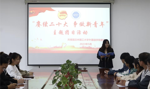 5月15日下午,外国语学院团委在彭家坪校区文理楼417会议室举行“赓续二十大,争做新青年”主题团日活动暨2023年新团员入团仪式。