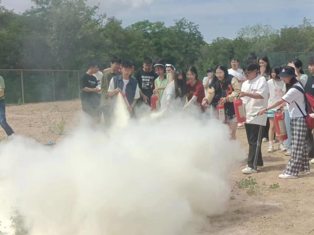演练前学校消防专业人员对全体学生进行消防安全教育,重点介绍了各灭火器材的名称、用法,强调了有关火灾现场的应急处置方法及使用灭火器的注意事项,针对消防安全“三提示”、消防安全“一懂三会”等消防安全知识进行了专业讲解,指导全体学生如何疏散、防烟、灭火。在火灾疏散逃生演练时,参演学生在各楼层引导员的指引下,迅速列纵队在所在楼层集合,并在各楼层引导员引领下有秩疏散,同学们弯腰捂鼻,从就近的楼梯口安全有序的疏散到楼下指定避险位置,集合后相关负责人员对疏散的学生人数进行清点,确保全体参演学生安全撤离。最后进行了灭火实战演练,参演学生拿起灭火器按照灭火的步骤和方法进行了演练和操作,迅速将火堆燃起的浓烟大火扑灭,亲自体验了现场灭火的过程。
