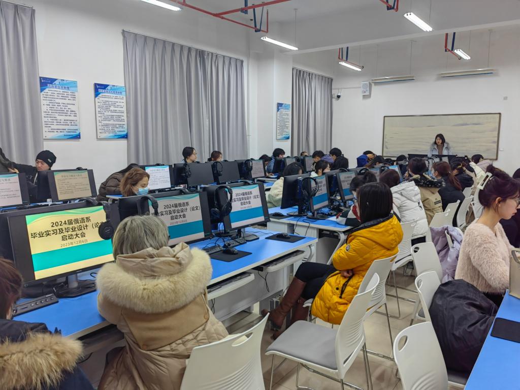 12月6日,俄语专业在文理大楼107召开2024届毕业论文、毕业实习启动大会,外国语学院党委副书记潘永锋,俄语系全体教师及两名外教,2024届全体毕业生参加了此次会议。