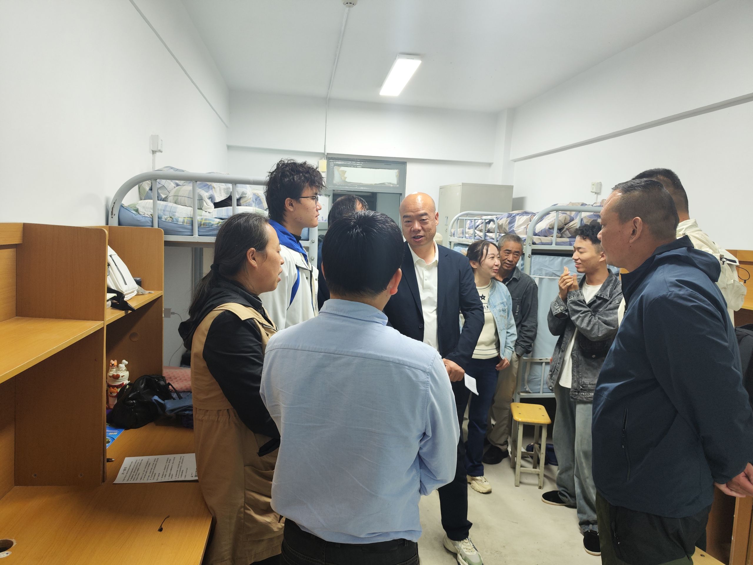 新生报到结束后,学院领导与辅导员、班主任组成慰问小组,逐一走进新生宿舍,开展“暖心家访”。每到一间宿舍,老师们都亲切地与新生及家长交谈,仔细查看住宿环境,询问“床品是否舒适”“生活用品是否齐全”“有没有遇到什么困难”,并主动留下联系方式,告知“有问题随时联系老师”。同时,针对宿舍安全,老师们反复叮嘱新生注意用电规范、防范火灾隐患,提醒大家保持宿舍整洁卫生,养成良好生活习惯;针对集体生活,鼓励新生主动与室友沟通交流,尽快融入集体,在互帮互助中共同成长。一句句叮嘱、一声声关怀,让远离家乡的新生倍感温暖,大家纷纷表示,“老师的关心就像家人一样,让我们对大学生活更有期待了”。